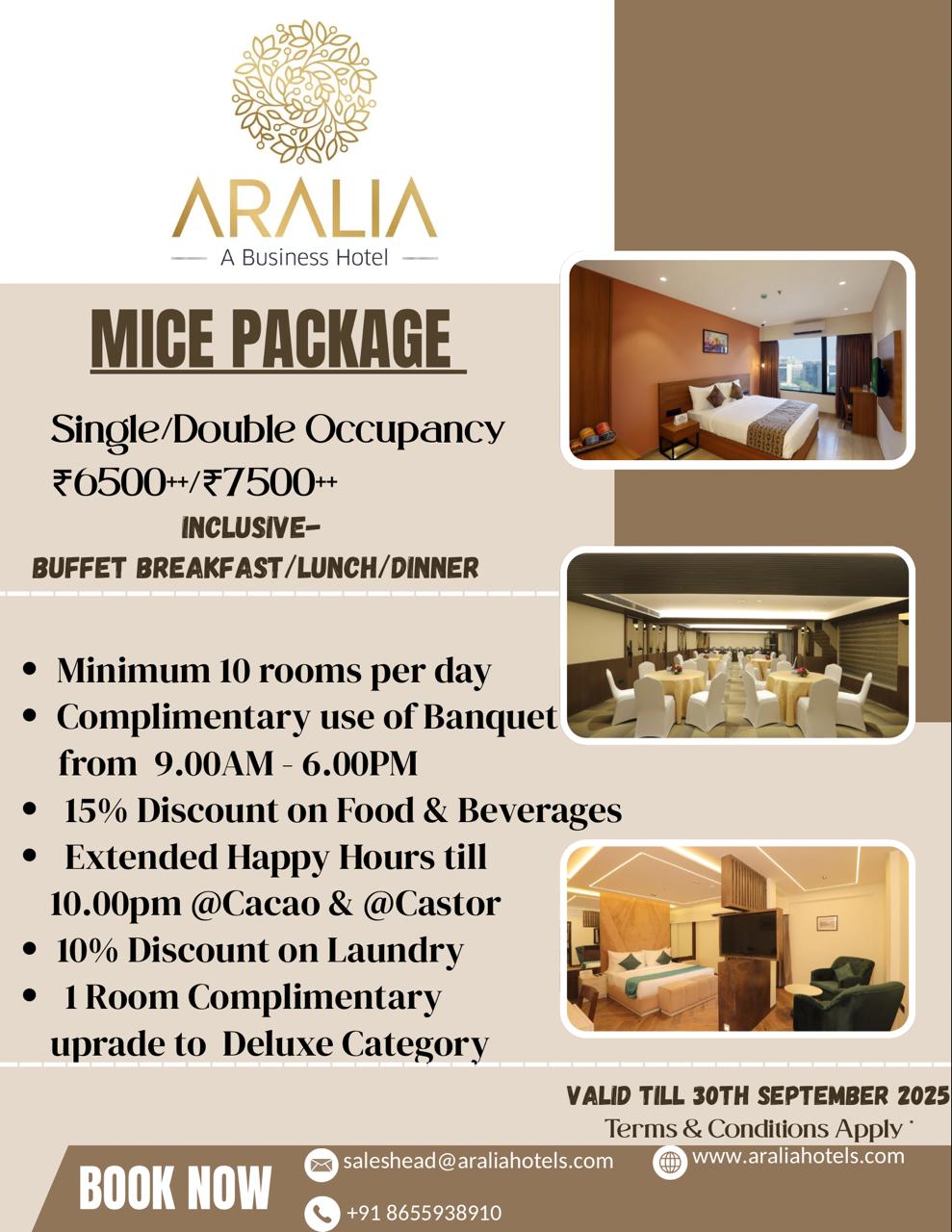 Welcome to the world of business class hotels. Aralia hotels offers a perfect combination of comfort and convenience. Our 81 guest rooms are designed for the business traveler with Wi-Fi&Smart TV.